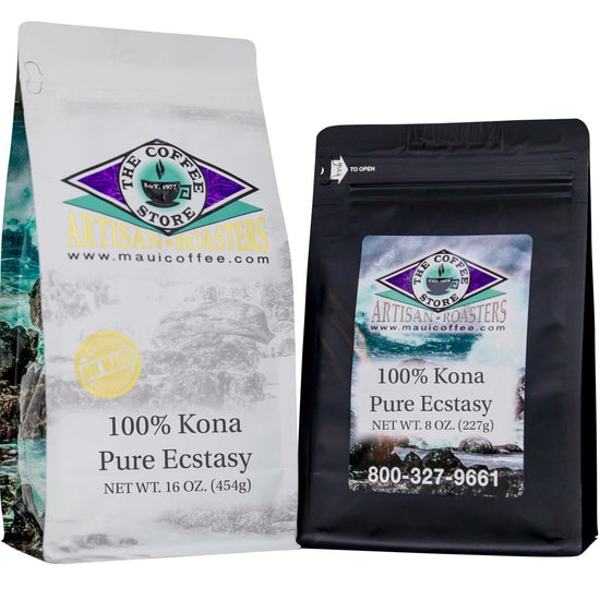 Something special for the Kona Coffee lover, our Kona Gift Pack includes: one bag 100% Kona Pure Ecstasy, one bag 100% Kona Estate, a bag of Kona Coffee Dark Chocolate Macadamia Nuts and our coffee-themed gift packaging.